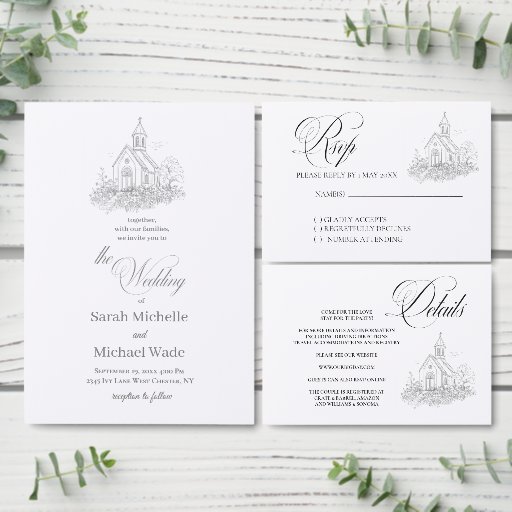 Church Calligraphy Wedding Invitation, please contact designer for any details