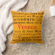 Landmerken van Venetië in typografie, zwarte tekst op sinaasappel met rood accent. Op de achterkant van de kussen, een dramatisch vintage-beeld van een traditioneel Venetiaans masker in rood op sinaasappel. Breng Venezia naar je huis!