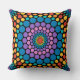 De kussen van de draad met een ontwerp van vele verschillende cirkels in verschillende grootte. Meerkleurig met roze en kleuren van de regenboog op een zwarte achtergrond. Ontwerp van Angela Hoard Dunn