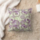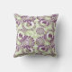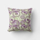 Deze werpkussens hebben een geometrisch ontwerp van cirkels die zijn versierd met lijnen en cirkels die zijn gemaakt van het herhalen van stippen in aubergine en groen.