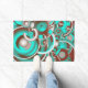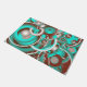 Circulair Celestial Concentric Circles futuristic artwork design afbeelding by TheFabricSeal at Zazzle. De digitale grafische ontwerpmanipulatie met vele overlappende geometrische patronen met concentrische stijlkleurengelaagde cirkels van Kandinsky door. Santa Fe Southwest-woestijn en Indiase kunst inspireerde kleuren van turquoise blauw en groen, koper, roest, rood, bruin, geelbruin en grijs. Ook beïnvloed door kunst van de renaissancestijlen Orient, Mediterranean, Indian and Tondo Tondos met een moderne mechanische tekening.