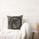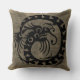 Stijlvolle werpkussens bieden een rond drakensilhouet dat gecentreerd is op een sepia textuurachtergrond.
