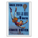 Cirque dʹHiver.. Tous les soirs, à 8 heures. Het Franse circus poster show een aerialist die zweeft met wapens die uitgerekt zijn boven een skyline van een stad met een ballon op de achtergrond.