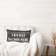 Cette citation de style rustique coussin chic en gris et blanc a un design typographique avec dire amis se réunissent ici pour la décoration maison.