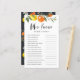 Wie kent de moeder het beste? Beantwoord deze vragen om erachter te komen. | Voeg deze leuke en speelse gamekaart toe aan uw evenement. Deze aanpasbare gamekaart "Who know the Ma Best" biedt waterverf illustraties van citroenen en sinaasappels. Personaliseer u door uw vragen toe te voegen. Dit citrusbaby shower giscard is ideaal voor zomerfeesten en baby showers.