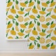 Kleurrijke citroen wallpaper met groene blad details. Aanvullende items beschikbaar. Originele kunst van de kunstenaar eigen illustraties. Gebruik de 'bericht sturen' knop hieronder voor hulp bij verdere aanpassing en speciale verzoeken. © Zoe Chapman Design