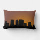 Een skyline van een grote stad, gedempt tegen de stijgende zon.