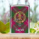 Clan Crawford crest badge omringd door een riem en sluiting over de tartan achtergrond. Aangepaste tekst.