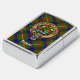 Clan Fraser krest badge omringd door een riem en sluiting boven de tartan achtergrond. Aangepaste tekst.