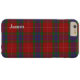 Geweldig uitziend iPhone Plus-hoesje in de traditionele Schotse tartan-gipsplaat, in het rode, groene, blauwe, paarse, blauwgroen en bruine Fraser-klandel. Licht grijze tekst, die verticaal omhoog de linkerkant loopt, is klaar om zich te personaliseren. De perfecte manier om je smartphone te beschermen en een geweldig cadeauidee.
