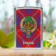 Clan Hamilton crest badge omringd door een riem en sluiting over de rode tartan achtergrond. Aangepaste tekst.