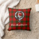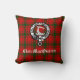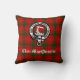 Schotse Clan MacQuarrie crest badge en tekst op tartan-achtergrond