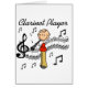 Op deze schattige kaart van een stokfiguur is een kleinetspeler en tekst met de tekst "Clarinet Player" te vinden.