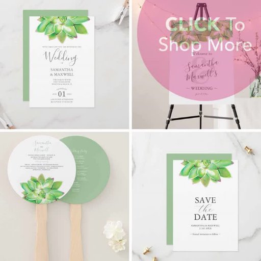 Classy Succulent Wedding Program Fan Handwaaier