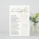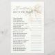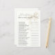 Elegante witte boog "20 Vragen over de bruid" spelkaart met chique scripttypografie op een schone, minimale achtergrond. Perfect voor het toevoegen van gelach en plezier aan een vrijgezellenfeest, huwelijksdouche of vrijgezellenfeest, vooral voor feesten met een boog of zwart-wit. Gasten beantwoorden persoonlijke en luchtige vragen over de bruid, waardoor het een aandenken is dat ze zal koesteren. Coördineert perfect met bijpassende uitnodigingen, inrichting en briefpapier in hetzelfde witte strikontwerp.