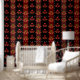 Classy zwart, rood, bruin bloemenstrepen patroon behang