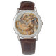 Laat je passie voor je fossielenverzamelhobby zien met een knap horloge. Dit is een mooi voorbeeld van een Cleoniceras Cleon uit Madagaskar. Dit fossiel heeft een prachtige doorsnede met daarin gouden calciet gekristalliseerde kamers. Ammonieten waren de belangrijkste mariene roofdieren tijdens het Jura en tot in het Krijt. Moderne familieleden die er vandaag de dag zijn, zijn onder andere inktvissen en gekamde nautilussen.