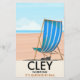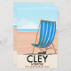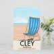Cley Norfolk vintage reisvakantie poster van een gestreepte dekstoel op het zandige strand.