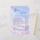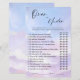 Infuse les festivités nuptiales avec la lévité en utilisant les cartes de jeu fantasques Cloud 9 Over ou Under! Chaque carte enrobée de nuages posera des questions numériques aux invités : les photos d'envoi auront-elles lieu plus ou moins de 30 minutes ? Le nombre de premières chansons de danse jouées est supérieur ou inférieur à 3 ? Déployez ces cartes qui suscitent de vives spéculations et des rires. Connectez-vous au-dessus des devinettes tandis que les motifs nuageux soulèvent l'état d'esprit joyeux de toute mariée. Les cartes blanches simplement élégantes se concentrent sur le plaisir sans compromettre aucune esthétique design. Ne négligez pas d’inclure cette activité qui donne un ton jovial célébrant les rêves d’amour se réalisent dans le ciel. Laissez les invités sourire et se rappeler des prédictions enthousiastes avec ce jeu de chiffres optimiste qui honore la joie radieuse de la future mariée. Parfait pour les douches sur le thème "nuage 9" !