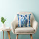Prachtig kussen met een nautisch thema van een zeepaardje met koraal om hem heen en blauwe en grijze strepen op de achtergrond. Verkrijgbaar in verschillende maten en verschillende stoffen.