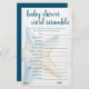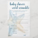 Ontruim de woorden van de Baby. (De Sleutel van het Antwoord hieronder) de Whimsical onder het zee keepasj baby shower of het geslacht openbaren partijspel omvat een casual hand-briefed manuscripttypografie bekleding. In het collectie worden met de hand geschilderde zeeschildpadden, zeeduivel, zeepaardkoraalrif en koraalrif in complementaire tinten gebruikt. ANTWOORD SLEUTEL: Shampoo, Baby Gate, Blanket, One-side, Diaper Bag, Stroller, Baby Monitor, Lullaby, Pacifier, Bottle For other kleuren or matching products, bezoek de JustFharryn Zazzle store of neem contact op met de ontwerper, c/o Fharryn@yahoo.com Alle rechten voorbehouden. #zazzlemade