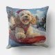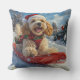 Cocker Spaniel Hond in Sledge Laat het Sneeuw Kers Kussen