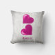 Ajoutez une touche de couleur à votre séjour ou à vos chambres avec un Oreiller à lancer personnalisé Magenta Hearts. Le design coussin comprend une paire de coeurs, une vigne feuillue blanche molle contre un arrière - plan gris clair avec une zone à personnaliser avec votre nom. Autres cadeaux disponibles avec ce design ainsi qu'une variété de couleurs.