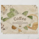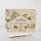 Waterverf collage voor koffie, met illustraties van koffie-planten, koffiekopje en tekst