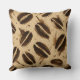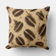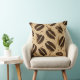 Decorative throw pillow featuring a seamless coffee-themed pattern with coffee bean shapes and expressive splash marks painted using a dry brush technique on recycled paper texture. Ink bleed effects and fine art printmaking style create a tactile, artisanal look in warm sepia and cream tones. Perfect for cozy, artistic, and café-inspired interiors.