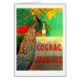 poster publicitaire cognac vintage Des couleurs brillantes et un paon magnifique montrent une bouteille de cognac.