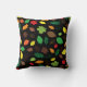Deze moderne werpkussens voorzien van een herfstpatroon met verschillende bladeren, geel, oranje, rood en bruin op een zwarte achtergrond.