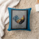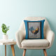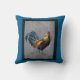 Een kleurrijk schilderij van een bantam roster op een grijze granietachtergrond. Deze rooster heeft exotische en kleurrijke vederpatronen. Een heldere rode kam en een mooie staart gemaakt van blauwe veren.