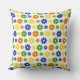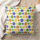 Een licht en vrolijk groot Sierkussen ontworpen in kleurrijke madeliefjes in geel, groen, blauw en Sinaasappel