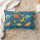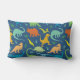 Kleurig Dinosaur silhouette-patroon. Tyrannosaurus Rex, titanosaurus, Triceratop, raptors, Ankylosaurus, Dino-Birds, Stegosaurus, Apatosaurus, Pteranodon en meer in een kleurrijk patroon op blauwe achtergrond, en dinosaurussen in groen, blauw, geel en oranje.