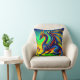 Dit kussen heeft een kleurrijke draak erop.