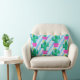 Cute cartoon style kawaii roze potted green cactus lumbar pillow.