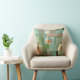 Pillow featuring a modern abstract Bauhaus style design in green, teal and gold.