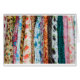 hoofddoek van vele kleuren en bloempatronen die zich in rijen herhalen