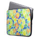 Een zeer sleeve om uw laptop te beschermen, met een oranje en sjaal nasturtium all-over patroon op een blauwe achtergrond, met zwarte binding.. Coördinaten met Rickshaw Messenger Bag, ook verkrijgbaar bij mijn winkel; van een waterverf ontwerp door Judy Adamson.