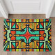 Voeg een levendige toets toe aan uw entree met deze kleurrijke geometrische patroon-deurmat van de stam. Met gedurfde tinten rood, sinaasappel, groen, geel en blauwgroen in het zwart, brengt het symmetrische, op stammen geïnspireerde ontwerp een kunstzinnige en levendige energie voor de deur. Perfect voor zowel binnen als buiten gebruik, deze deurmat combineert functionaliteit met opvallende stijl. Of u nu gasten verwelkomt of persoonlijkheid toevoegt aan uw interieur, dit unieke geometrische patroon maakt een statement. Duurzaam en opvallend, het is een geweldige manier om uw persoonlijke stijl te laten zien terwijl u uw vloeren schoon houdt.