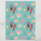 Kleurrijke illustraties van de waterverf van seizoenshellen, koraal- en onderwaterleven creëer een patroon op aqua-achtergrond. Eén zijde is een groter patroon