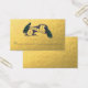 Les cartes de visite de paons d'or avec un effet de photo de feuille d'or ont imprimé personnalisé avec les initiales de monogramme. Rouleau vintage avec deux paons. Elke Clarke©