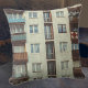 "Je ziet de wereld niet echt als je alleen door je eigen raam kijkt" kussen met een foto van een appartementengebouw voor reizigers, en stadsgeliefden. Maak het alsjeblieft persoonlijk en voeg je eigen bericht toe.