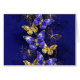 Composition of luxurious sapphire and gold jewelry butterflies on blue texture background.