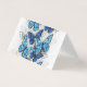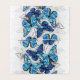 Composition verticale de papillons morpho bleus et blancs réalistes sur fond gris texturé. Papillon bleu Morpho.