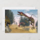 Compsognathus dinosaur die op een gekko jaagt in een lagune met kalamiet per dag - 3D
