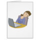 Dit ontwerp is voor iedereen die computerfrustratie heeft ervaren. Het is van een vrouw die op haar computerbureau zit met een zeer afgetreden en gefrustreerde blik op haar gezicht. Het ontwerp voor computerfrustratie ziet er geweldig uit
