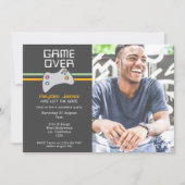 Computerspel over Batchelor Party. Speler heeft het spel verlaten ... vul gewoon de details in op deze leuke aanpasbare vrijgezellenfeestuitnodiging - personaliseer om aan uw vereisten te voldoen .. Game over grappige trouwproducten van Ricaso - perfect voor nerdy nerdy videogame bruidegom te zijn.
