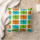 Retro Inspiré design Coussin, style mi-siècle, main dessinée par l'artiste. Motif turquoise bleu, orange et vert citron sur un arrière - plan blanc.