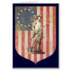 Tekening van Concord Minuteman met 13 kolonies (Betsy Ross) eerste Amerikaanse vlag op de achtergrond. U kunt uw bericht op de dekking en de groet binnen toevoegen.